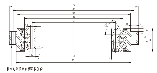 ZKLDF推力角接触球系列转台轴承采用双向60度接触角、双排球结构设计故可承受径向载荷、双向轴向负荷和倾覆力矩;特殊结构的黄铜保持架设计,使其具有更高的强度、较低的摩托力矩;因此该系列轴承特别适合于超高速、长期运转和对刚性、精度有高要求的场合。