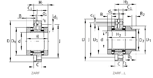 滚针/推力圆柱滚子轴承按照外圈安装方式的差异可以分为螺栓安装和非螺栓安装两个类型系列。